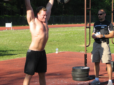 Dibo hits a rep in the 135# clean n overhead/chest to bar pull ups 8 minutes AMRAP WOD (#3 of the day) at the Dirty South Qualifier.